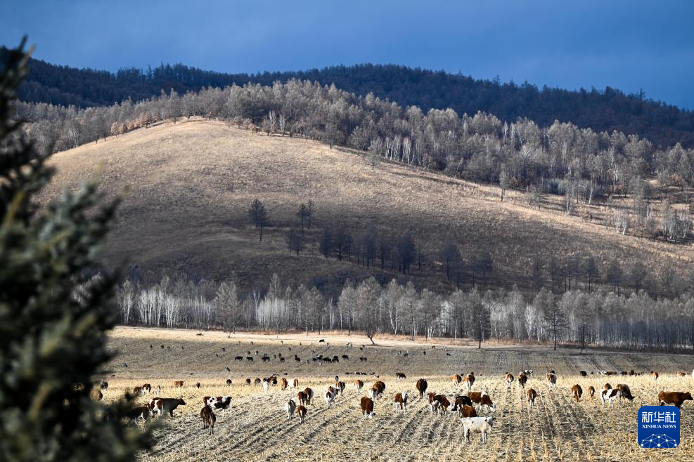 2024年11月11日在内蒙古呼伦贝尔市扎兰屯市柴河镇拍摄的牧群。