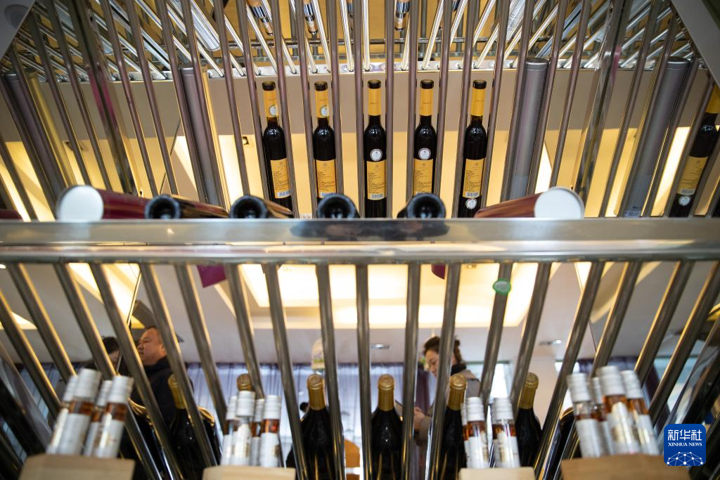 游客在大兴安岭北极冰蓝莓酒庄有限公司内选购野生蓝莓制作的蓝莓酒(2023年3月16日摄)。