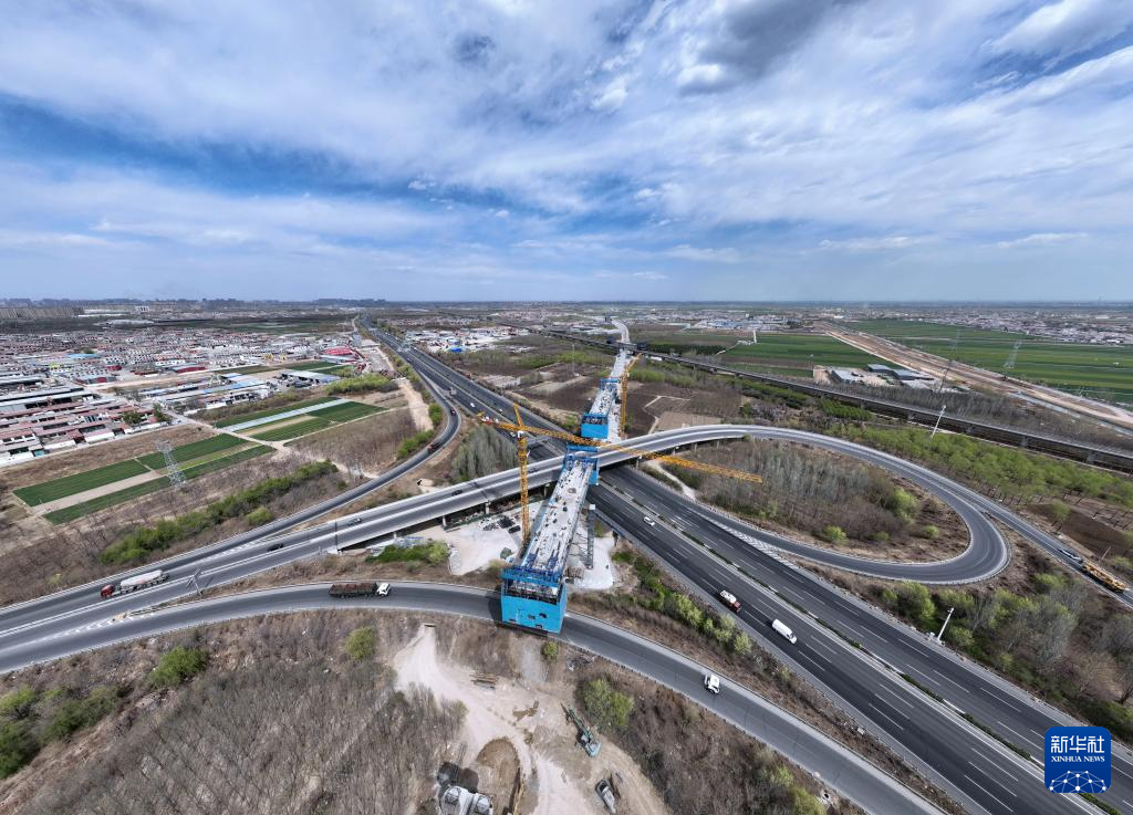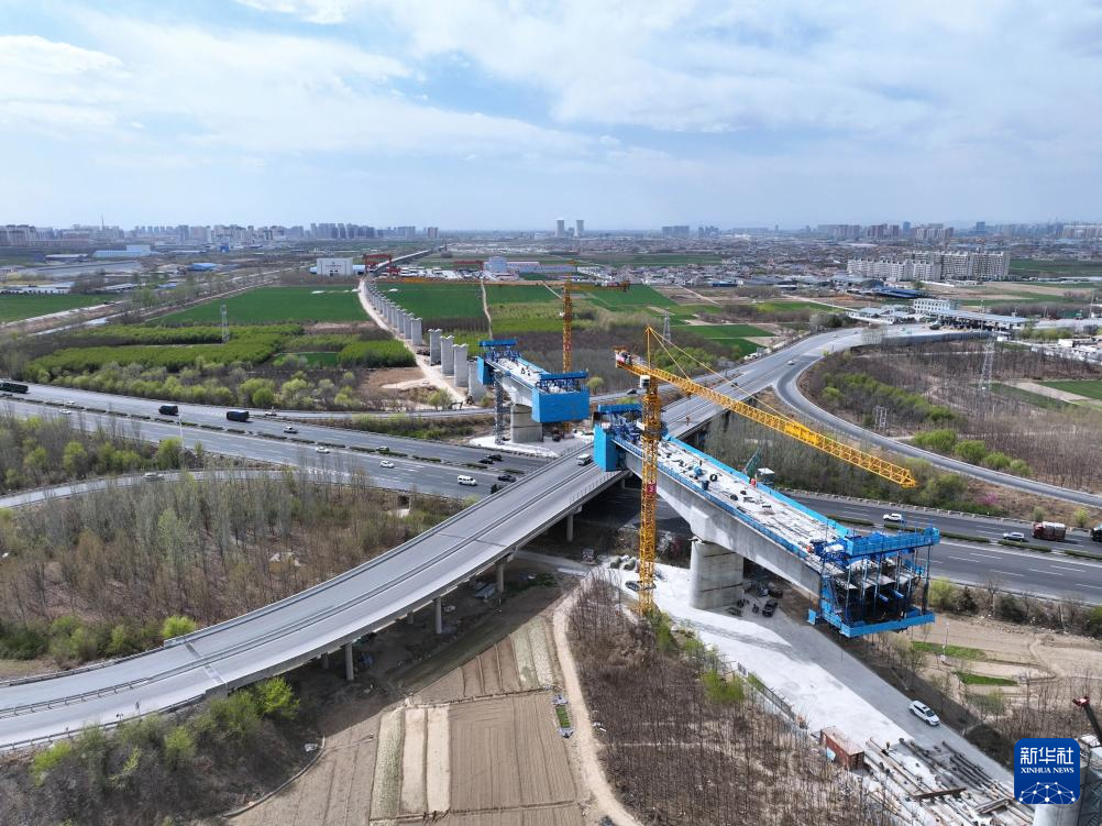 4月1日拍摄的建设中的雄忻高铁雄安至保定段(无人机照片)。