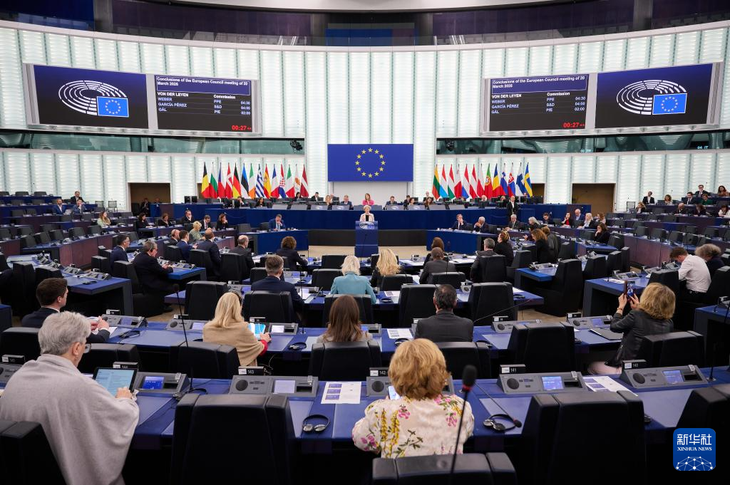 这是4月1日在法国斯特拉斯堡拍摄的欧洲议会全会现场。
