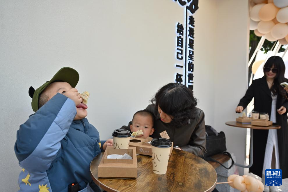 4月2日,儿童在“星点心愿”——支持孤独症青年工作公益店品尝爱心饺。