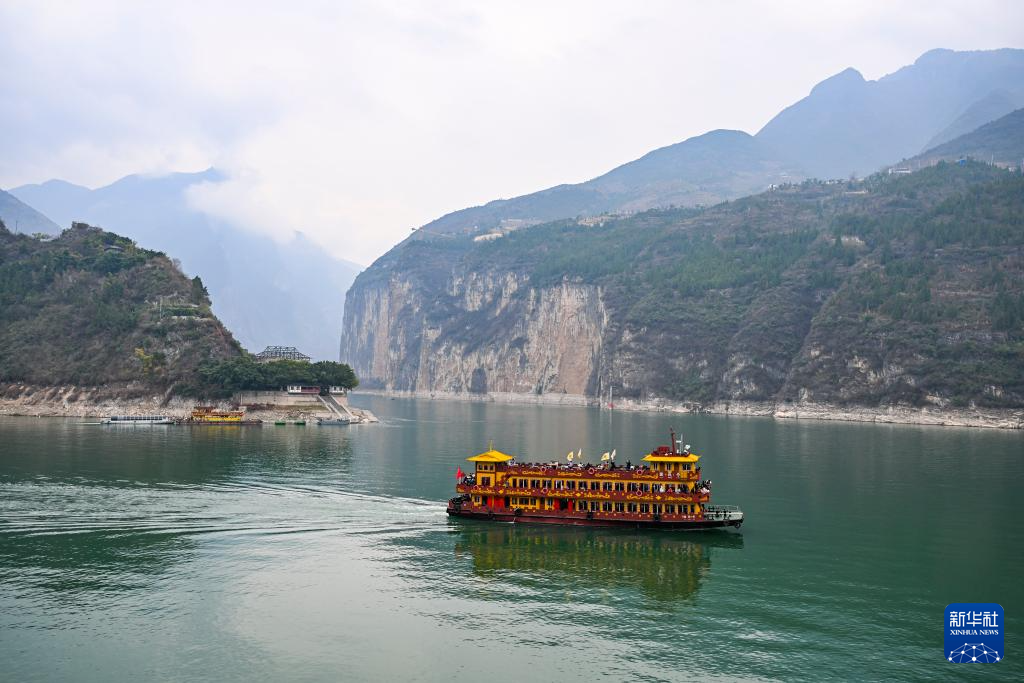 游轮行驶在重庆奉节瞿塘峡一带(2025年2月13日摄)。