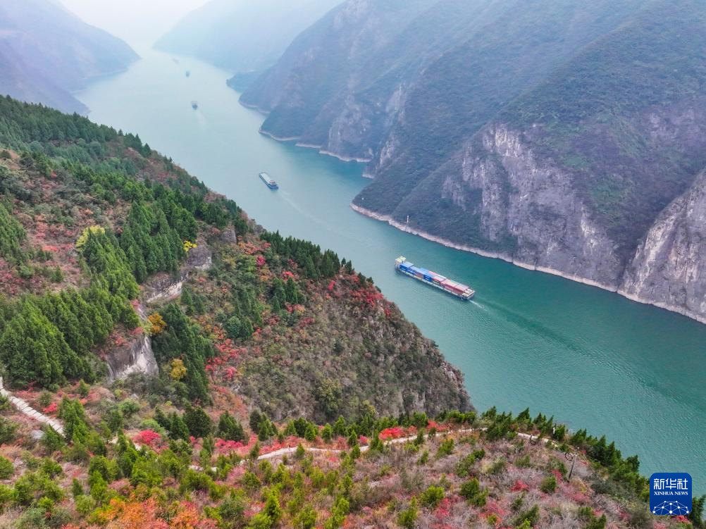 游轮行驶在重庆奉节瞿塘峡一带(2025年2月13日摄,无人机照片)。