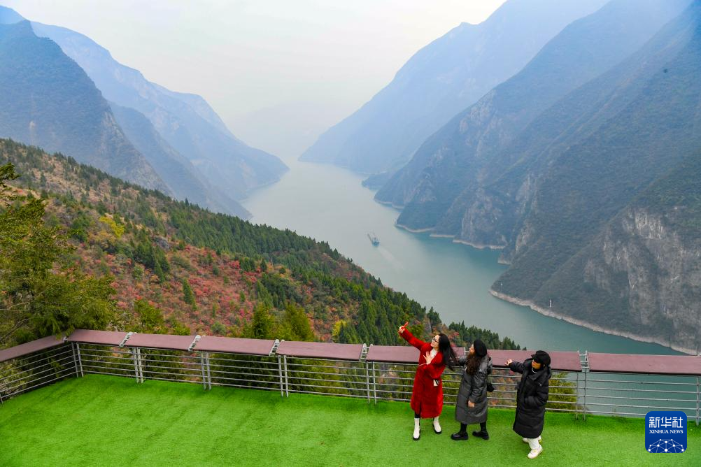 游客在重庆奉节坳口观景点游览拍照(2024年12月19日摄)。