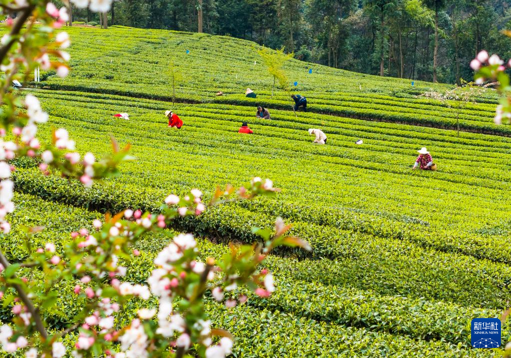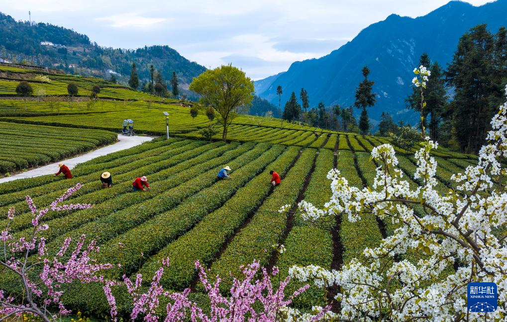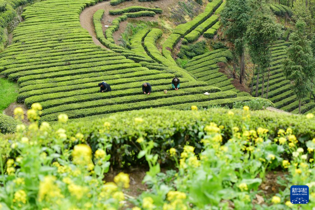 4月4日,茶农在湖北省宣恩县椒园镇一茶园里采茶。