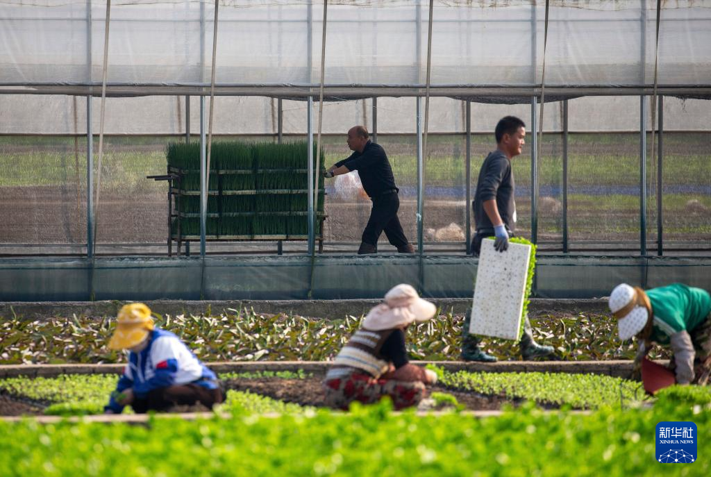 4月4日,农民在云南省玉溪市通海县秀山街道的蔬菜种植基地种蔬菜。