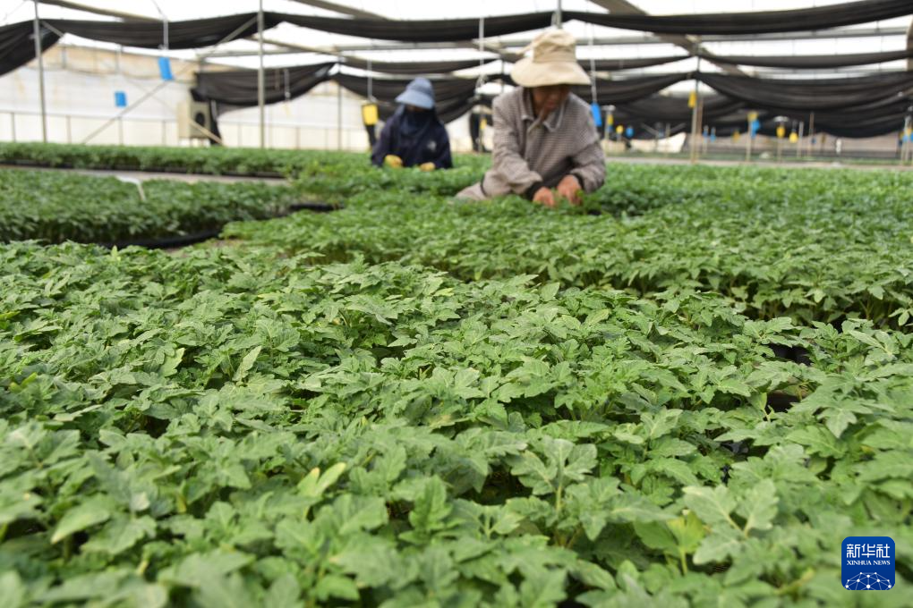 4月4日,农民在云南省红河哈尼族彝族自治州蒙自市草坝镇一大棚挑选番茄秧苗。