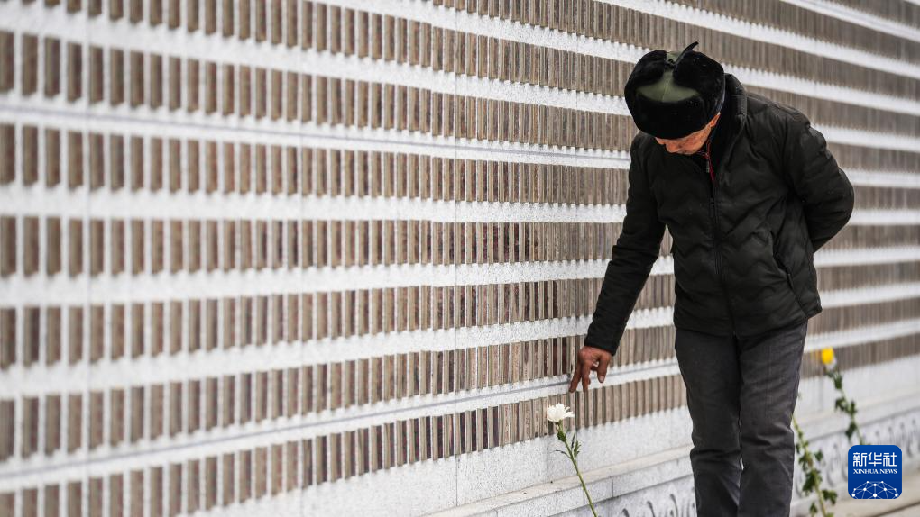 4月4日,老人在贵州省贵阳市解放贵州革命烈士纪念墙前缅怀先烈。