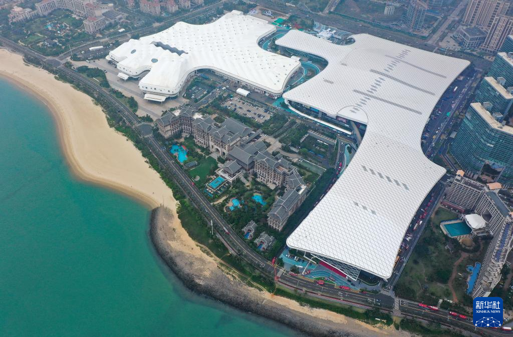 这是4月10日拍摄的第五届中国国际消费品博览会主会场海南国际会展中心(无人机照片)。