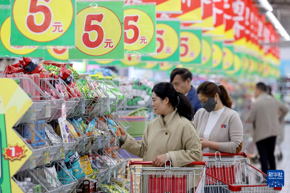 4月10日,消费者在黑龙江省齐齐哈尔市一家超市选购商品。