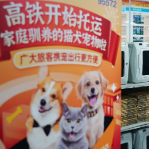 自4月8日起,铁路部门在京沪高铁北京南、济南西、南京南、上海虹桥、杭州东5座车站间的10趟列车上试点宠物托运服务。铁路12306同步推出“宠物托运”功能,旅客可提前2天及以上进行线上预约,预约成功后可同车托运1只家庭驯养且健康状况良好、单只体重不超过15公斤、肩高不超过40厘米的猫、犬类宠物。