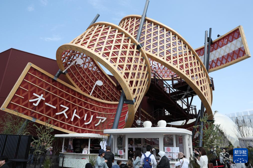 这是4月14日在日本大阪世博会园区内拍摄的奥地利馆。