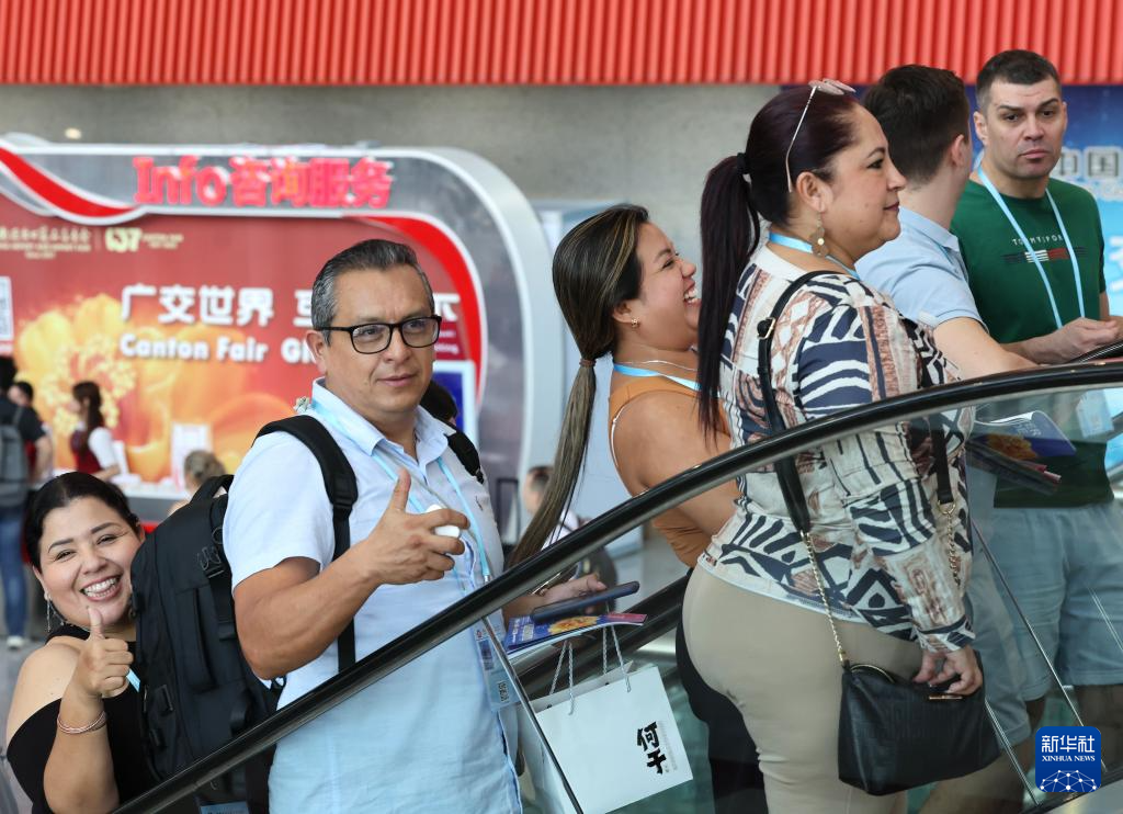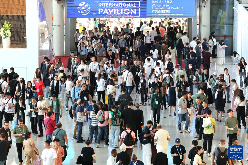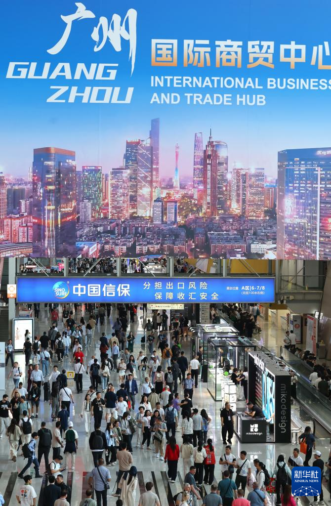 4月15日,第137届广交会开幕当天,中外客商行走在广交会场馆内。