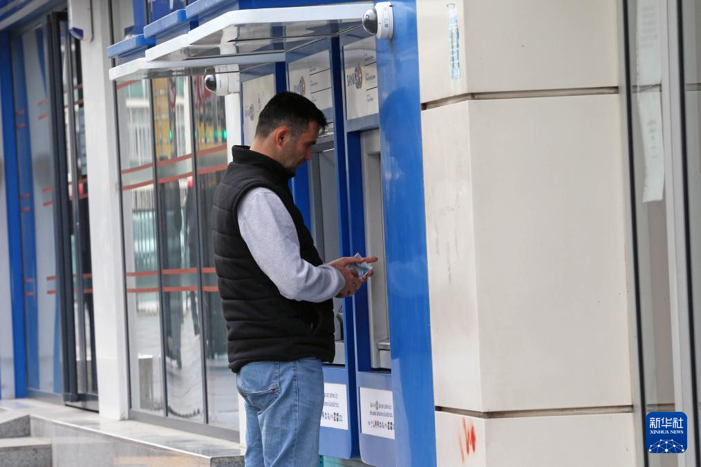 4月17日,一名男子在土耳其首都安卡拉街头使用自动取款机。
