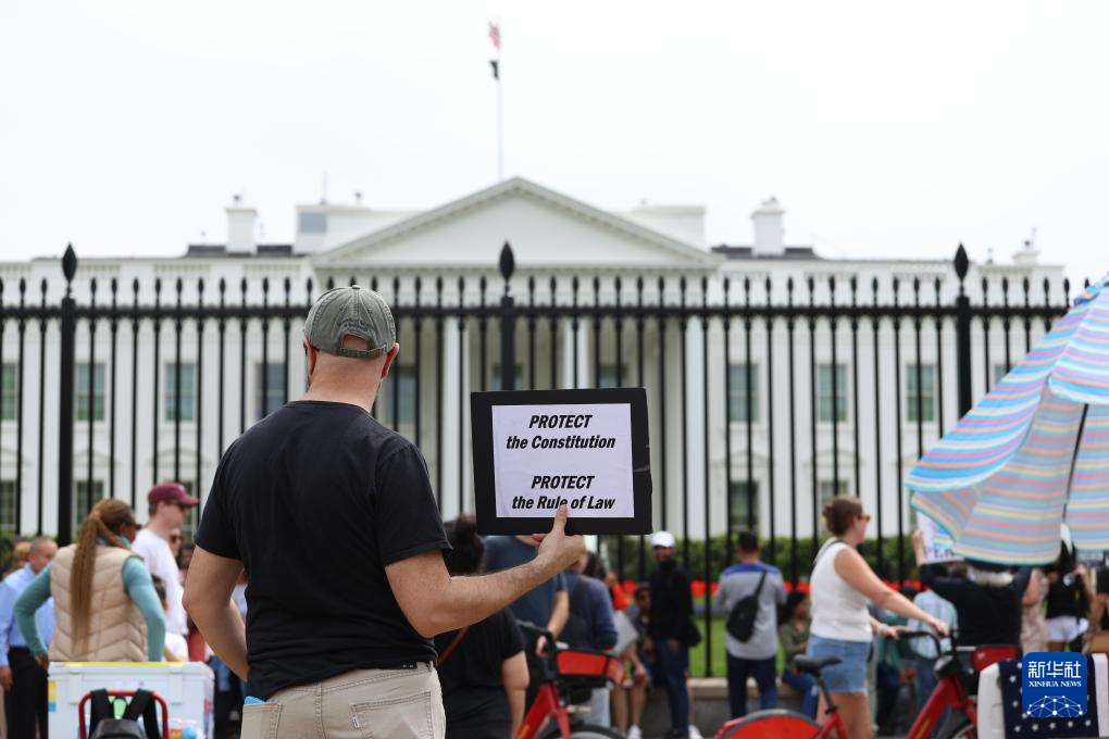 4月19日,人们在美国首都华盛顿白宫门前参加抗议活动。