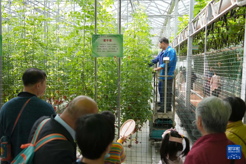 4月20日,在第二十六届中国(寿光)国际蔬菜科技博览会上,人们在观看先进种植模式展示。
