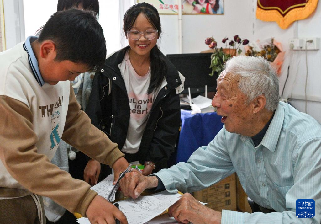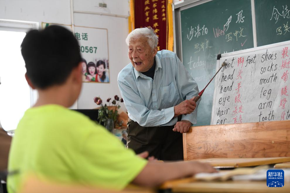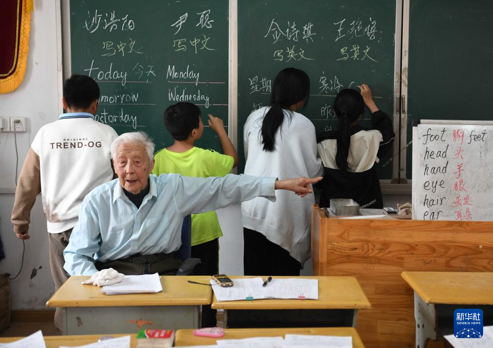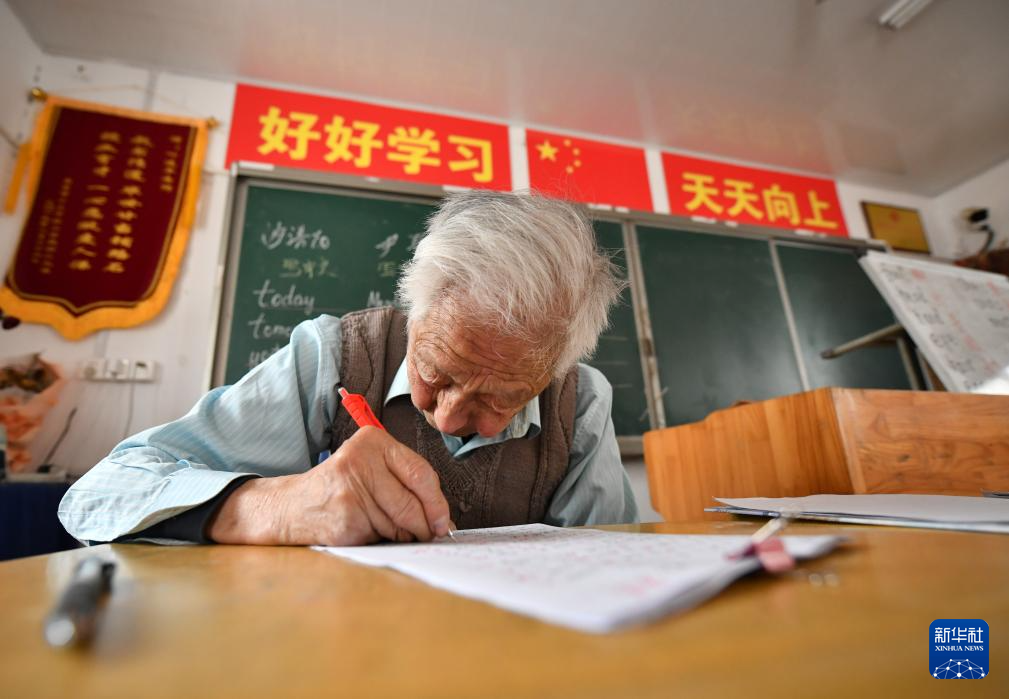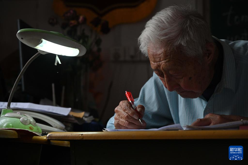 来访时,97岁的叶连平正在卜陈村的一间平房里批改学生们的作业。他时而满意地点头,时而因作业中的错误叹息,作业本上满是他的批注。