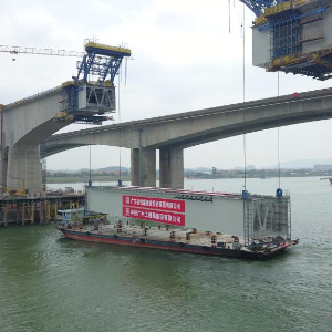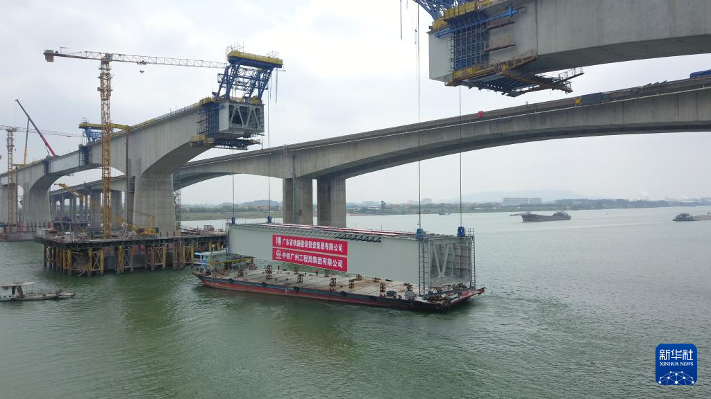 当日,由中铁广州工程局承建的广湛高铁佛山特大桥跨西江钢混混合连续刚构桥实现合龙。