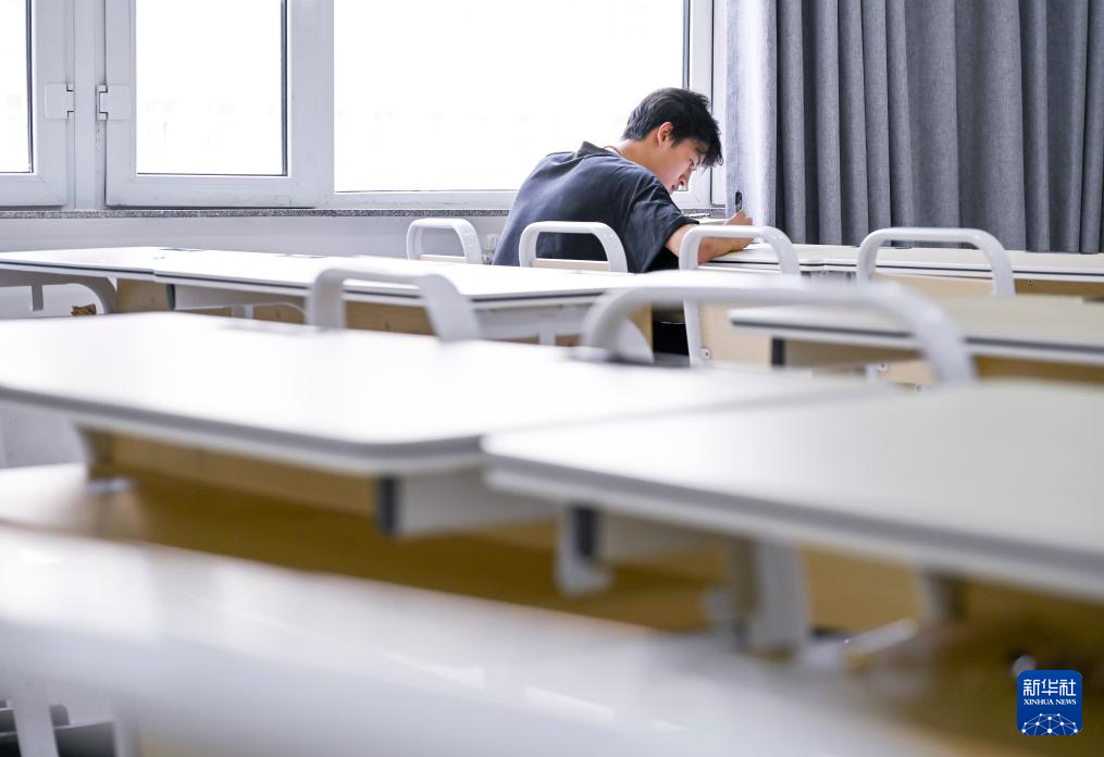 4月18日,罗昊在舞蹈学院理论课教室里写作业。