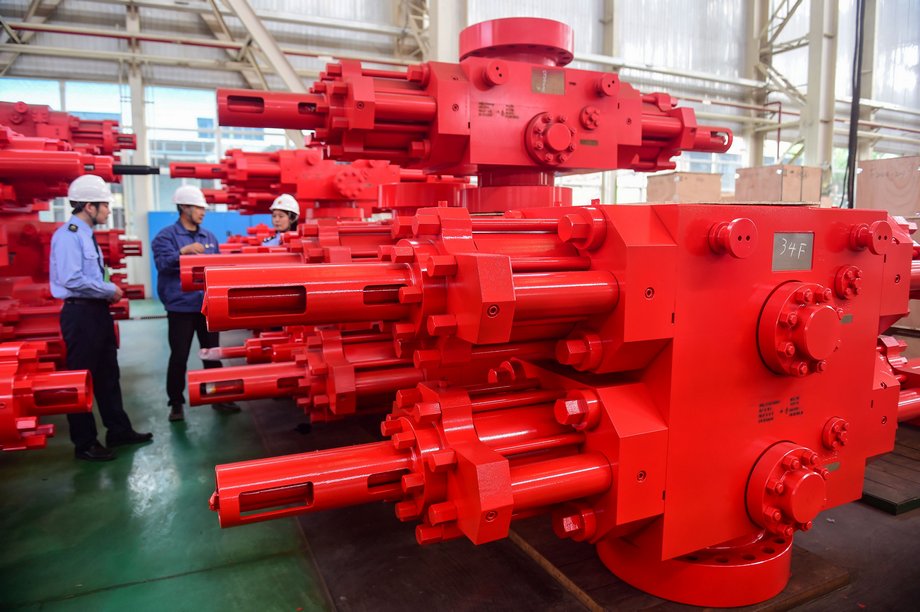 4月23日,在河北沧州任丘一家获评A级纳税信用的石油机械制造企业,税务工作人员调研企业获得的纳税信用红利情况。