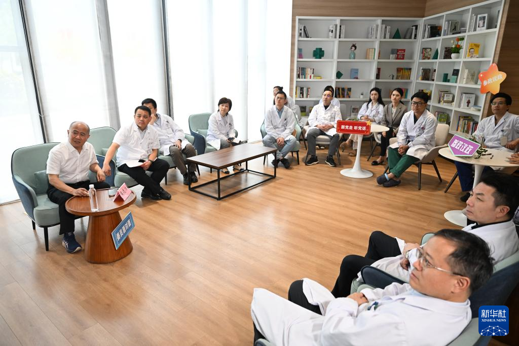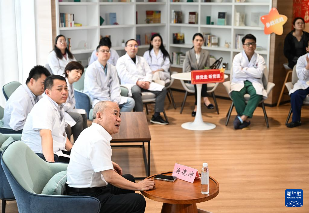 4月22日,在苏州大学附属第一医院,吴德沛为医院民主党派医务人员宣讲全国两会精神。