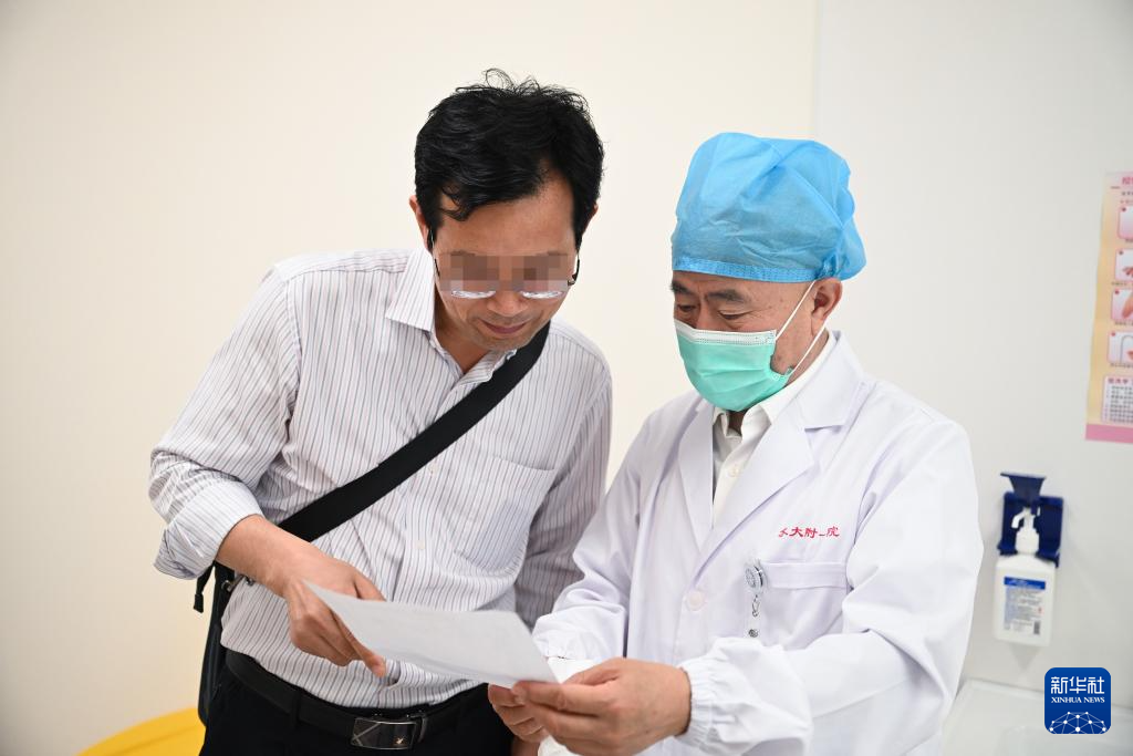 4月22日,在苏州大学附属第一医院,吴德沛给门诊患者讲述病情和治疗方案。