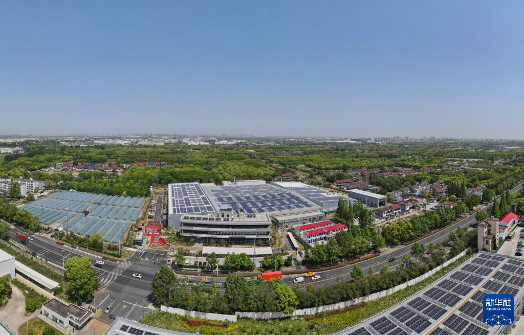 空中俯瞰位于上海嘉定区外冈镇的联合轴承生产基地(4月25日摄,无人机全景照片)。