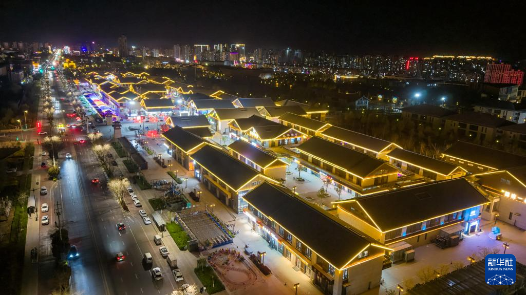 这是4月24日在武威市凉州区拍摄的一处夜市(无人机照片)。