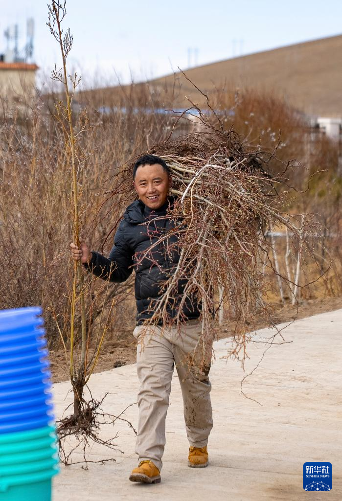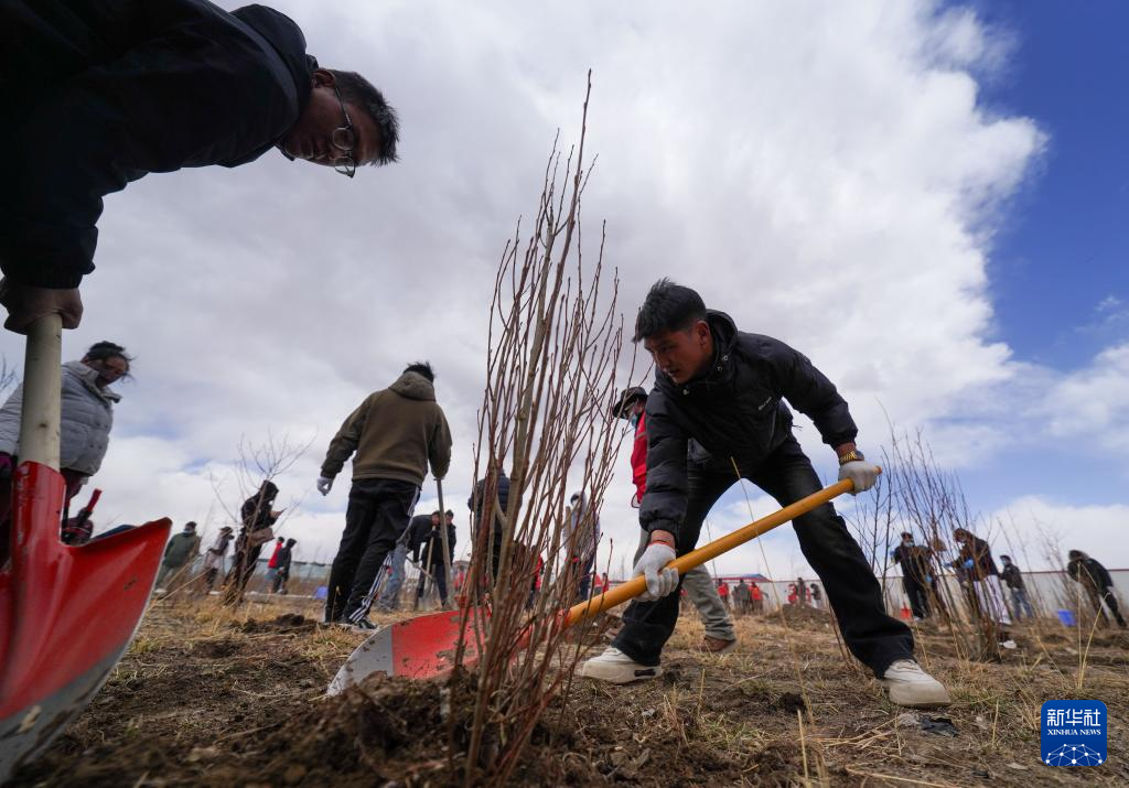 4月25日,西藏那曲市开展义务植树活动,为这片高海拔地区再添一抹新绿。