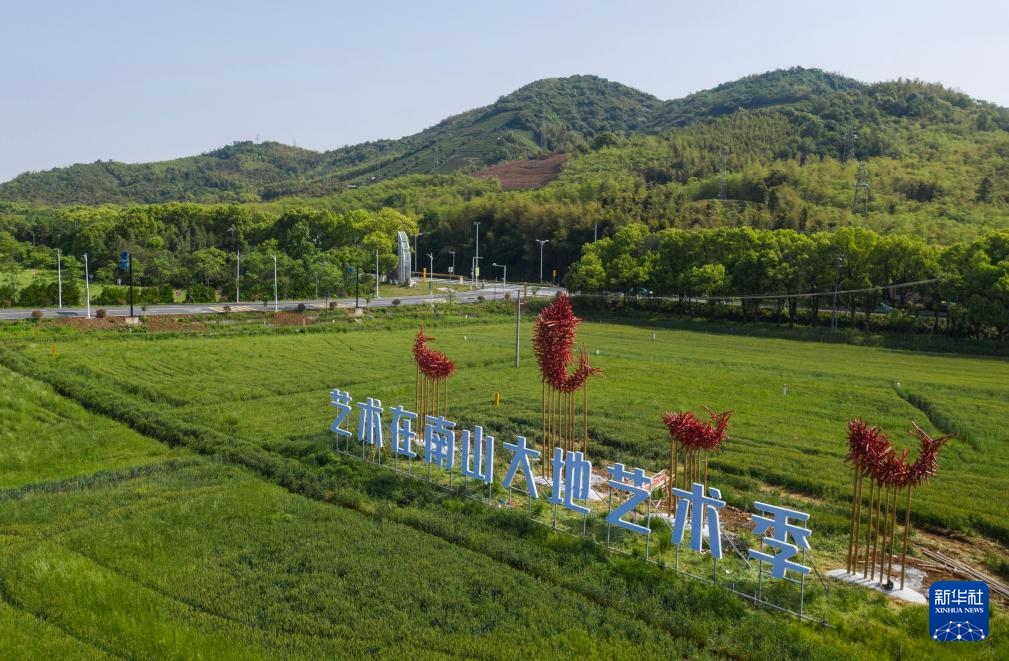 当日,“艺术在南山·大地艺术季”在浙江省湖州市吴兴区东林镇的麦田开幕。活动联手中国多家美术学院的师生作为主创团队,在东林镇田野与村落中创作42件在地性大地艺术作品,以广袤大地为画布、以自然元素为媒介,将艺术装置、景观艺术等多元艺术形式巧妙融入田野与村落,精心构建“没有屋顶的美术馆”,让游客和当地群众在乡野间品味艺术。