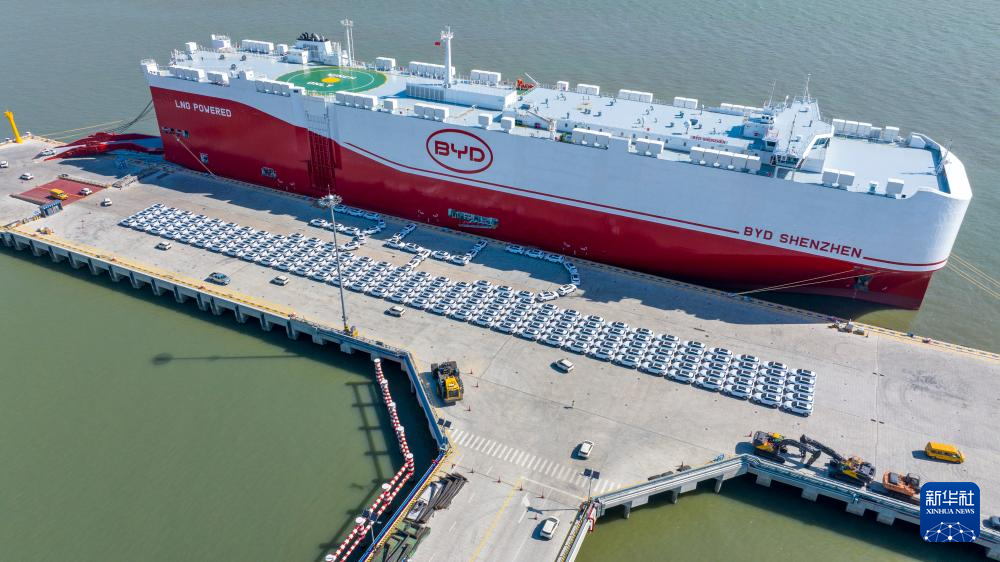 近日,江苏苏州港太仓港区码头一片繁忙,全球最大装载量汽车运输船“深圳号”在此进行装车作业,随后将装载着比亚迪汽车开启首航。该船全长219.9米、宽37.7米,配备16层甲板,可装载9200辆标准车。由比亚迪自主运营的“深圳号”,系其投运的第四艘专业汽车滚装船。