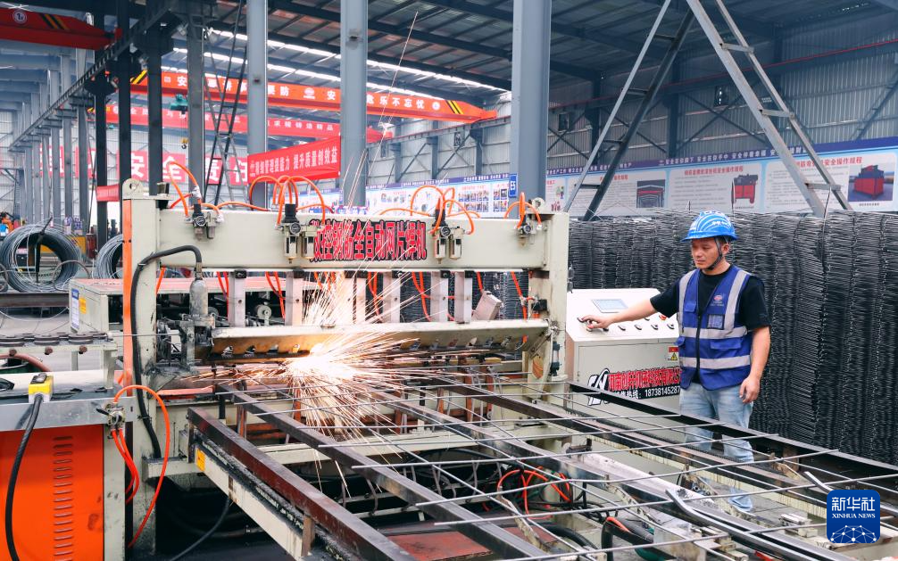 4月27日,深圳外环田头山隧道群钢筋场的数控焊机在自动焊接钢筋网片。