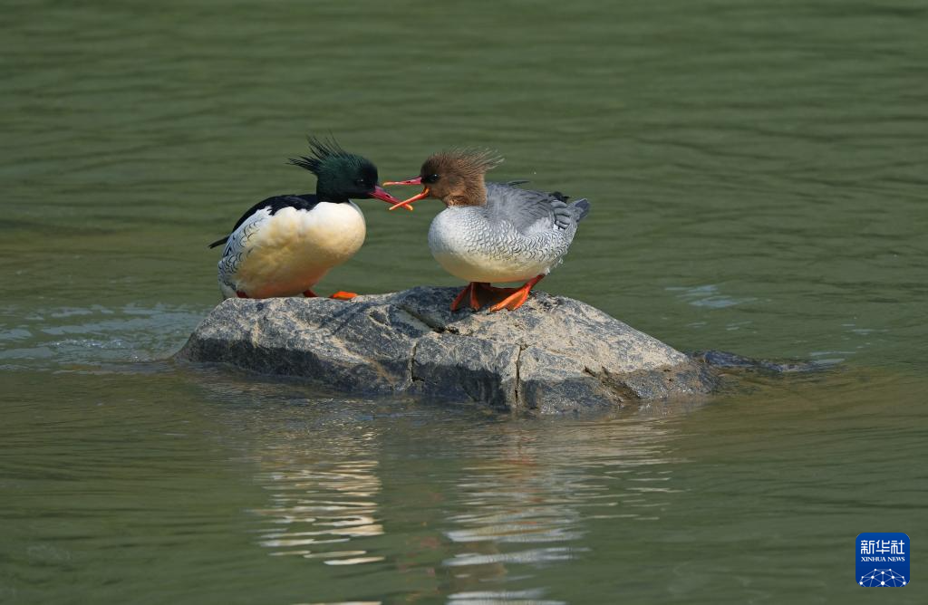 中华秋沙鸭在龙虎山景区水域栖息(2月24日摄)。