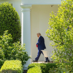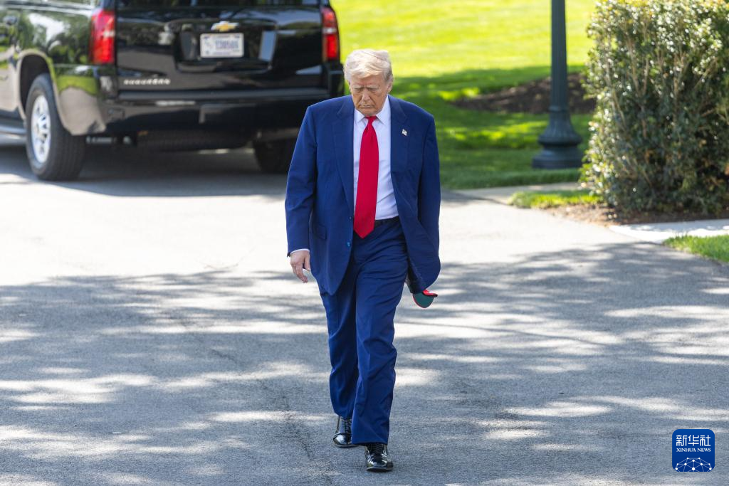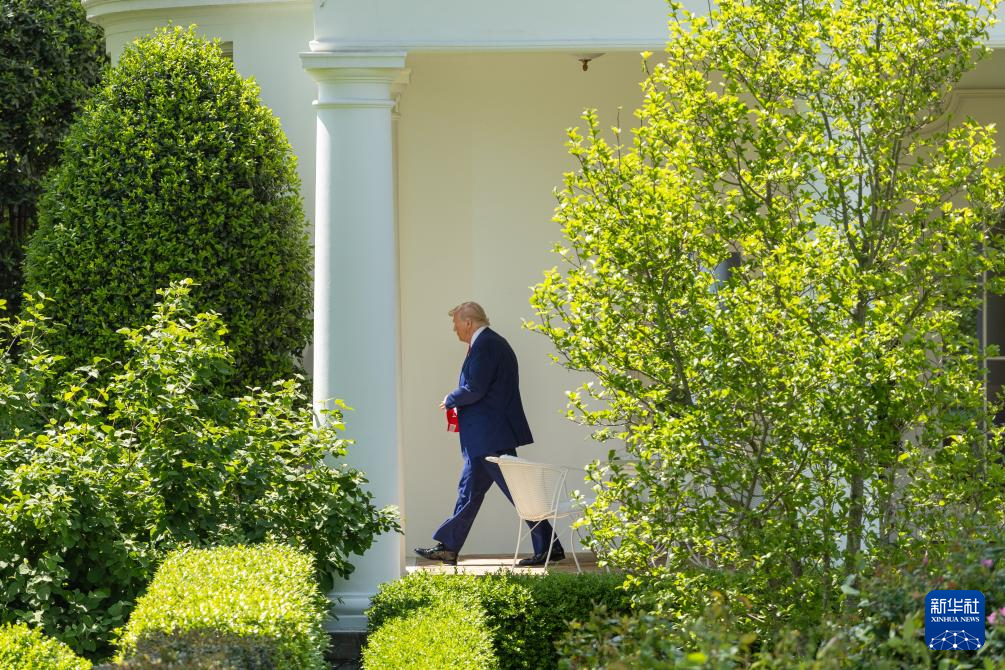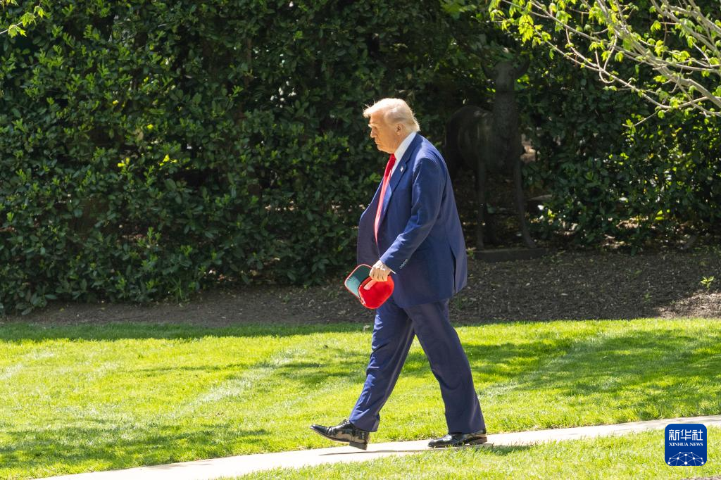 4月29日,在华盛顿白宫,美国总统特朗普走向南草坪准备登机。