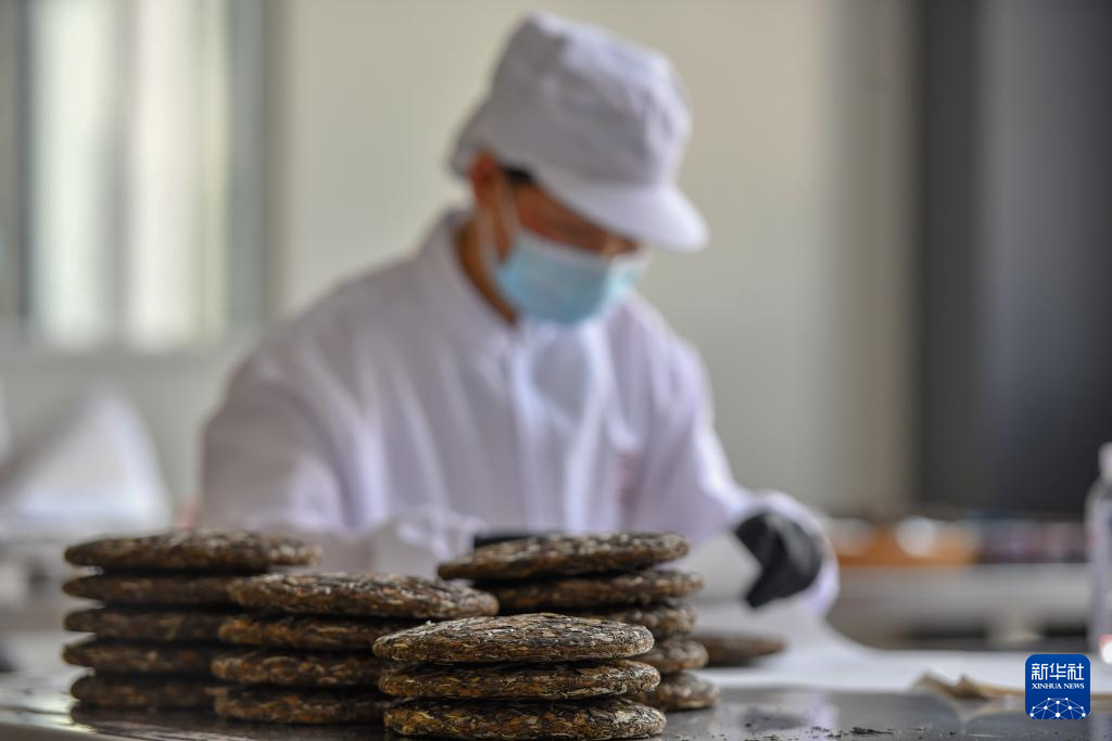 5月8日,工人在麻栗坡县猛硐乡新华国茶加工厂作业。