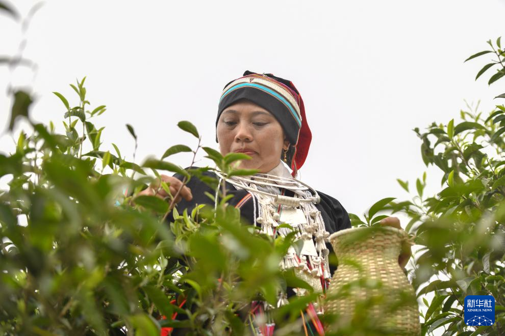 5月8日,茶农在麻栗坡县猛硐乡的一处茶园采摘茶叶。