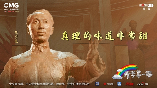 在百年前长夜难明的中国,正是这本已经微微泛黄,仅有56页的小册子,指引着早期共产党人探索救国救民之路,更点燃了百年来无数革命志士追求理想与信仰之火。曾多次饰演毛泽东的青年演员侯京健,向全国同学们讲述了李大钊、毛泽东、陈望道这三位革命先辈与《共产党宣言》之间的故事。