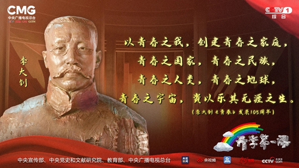 这首充满热血豪情的《青春》,是李大钊1916年9月1日发表在《新青年》上的作品,在当时黑暗笼罩下的中国,唤醒了无数青年人为国家前途而积极求索的青春斗志。2021年距离《青春》问世已经过去了整整105年,百年筚路蓝缕,百年艰辛求索,一本《共产党宣言》,串联起了革命先辈们永不熄灭的青春理想。一代又一代共产党人在砥砺前行中坚守红色信仰,为党和人民的事业不懈奋斗,百年风雨兼程、艰难跋涉,不改求索初心,不负青春韶华。
