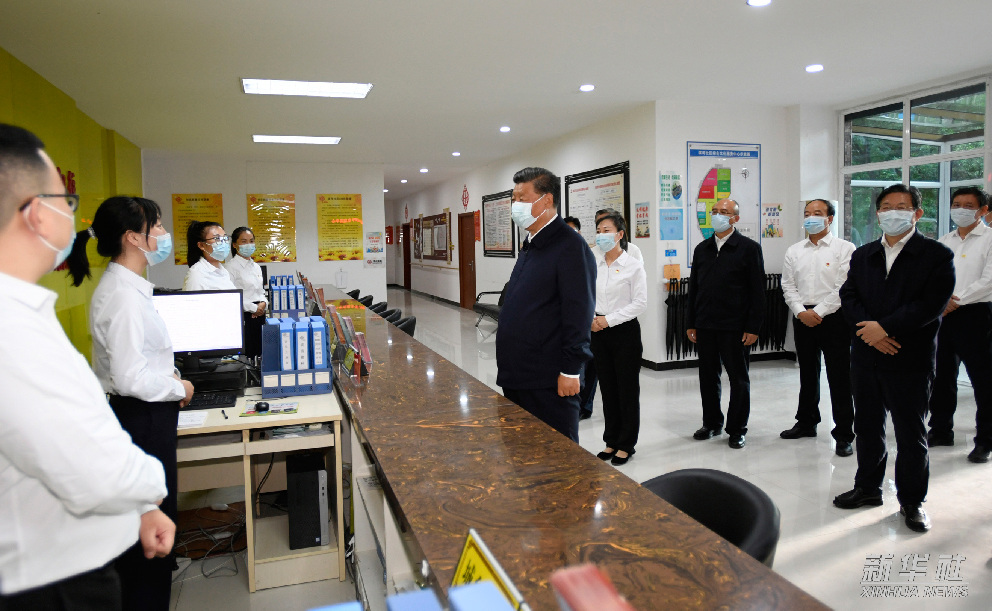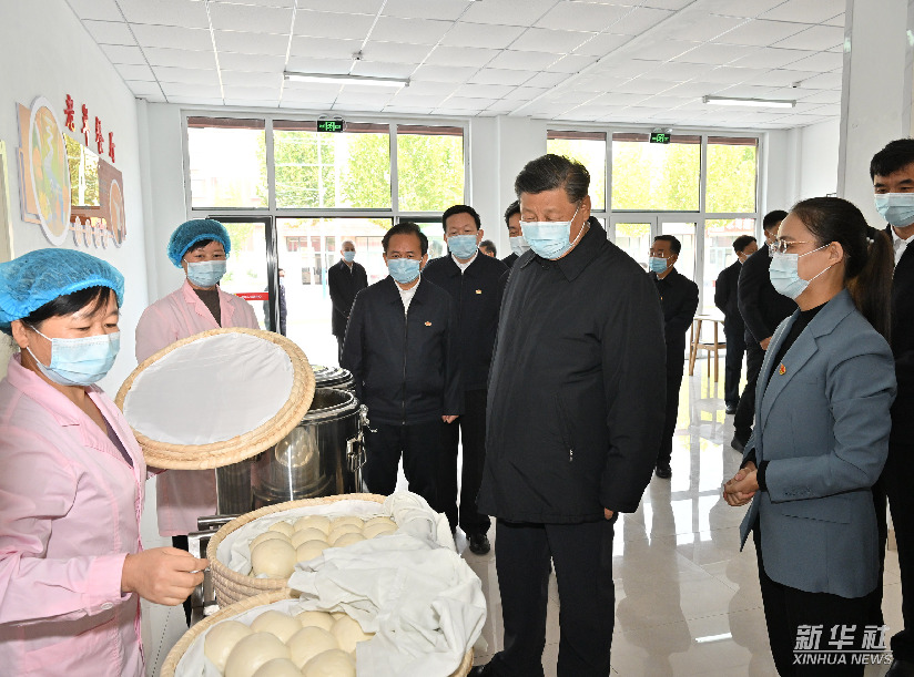 6月7日下午,习近平在青海省西宁市城西区文汇路街道文亭巷社区幸福食堂,了解社区向老年人提供餐饮服务情况。