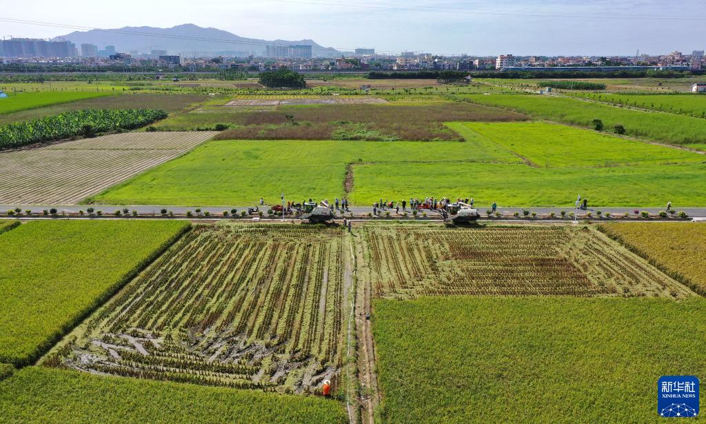 10月26日在三亚市崖州区(坝头)南繁公共试验基地试验示范点拍摄的稻田(无人机照片)。新华社记者 郭程 摄