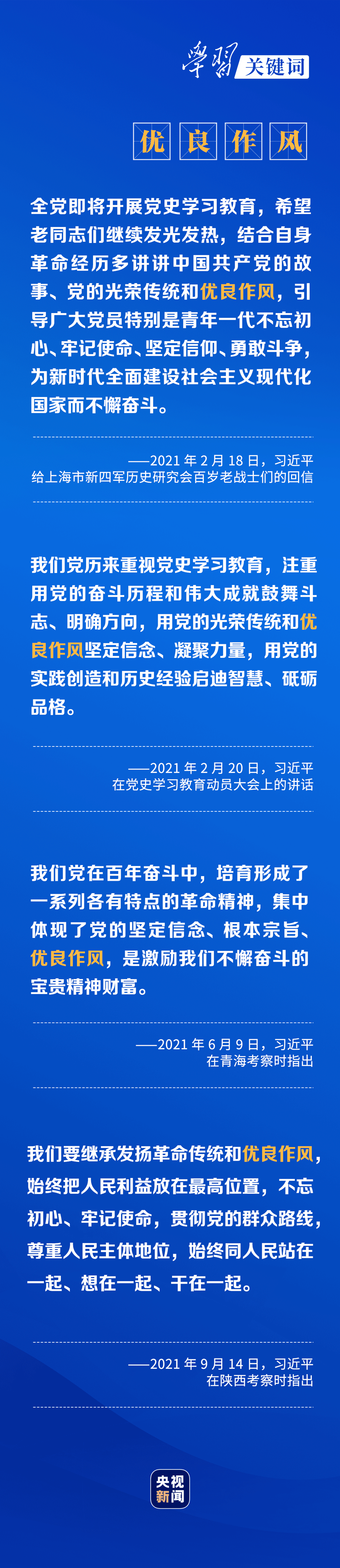 回望过往历程,眺望前方征途,我们必须始终用党的光荣传统和优良作风坚定信念、凝聚力量。一年来,总书记走到哪里,就把党的优良作风讲到哪里。