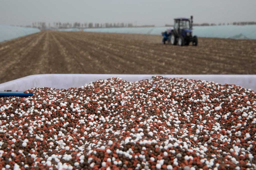 2021年4月22日,在黑龙江省大庆市肇州县一处农田,农民在进行机械播种。新华社记者 张涛 摄