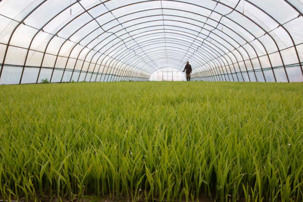 2021年5月13日,工人在黑龙江省抚远市玖成水稻种植专业合作社养护秧苗。新华社记者 张涛 摄