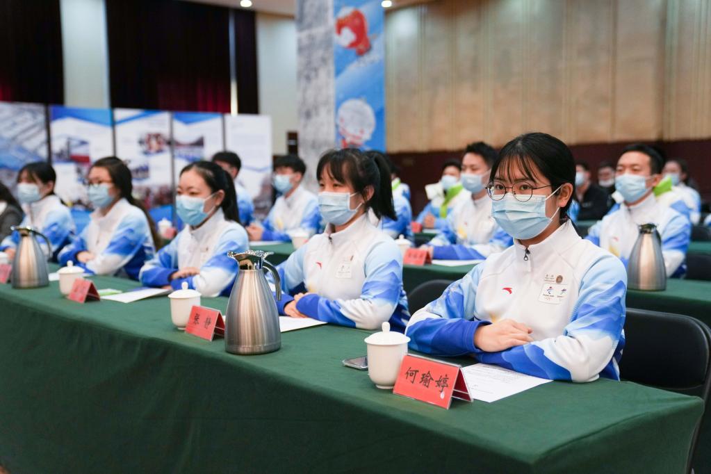2021年12月31日,志愿者代表参加北京2022年冬奥会和冬残奥会誓师动员大会。新华社记者 鞠焕宗 摄