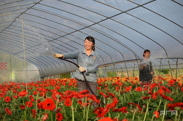 黔南州龙里县醒狮镇花农们正在培育管护非洲菊(央广网发 冯小东 摄)