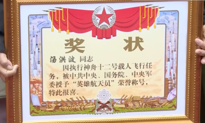 送到了航天员汤洪波的家中