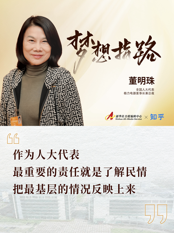 “作为人大代表,最重要的责任就是了解民情,把最基层的情况反映上来;作为企业家,最重要的是与国家同呼吸、共命运,不断追逐梦想,用更好的技术带来更多的改变。”董明珠说。
