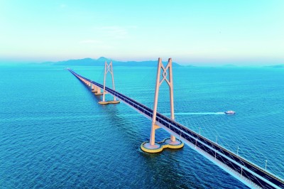 你瞧,洋面上最具代表性的标识,不再是沉静海中的伶仃山,而是飞跨洋面的港珠澳大桥。放眼望去,青州航道桥上,“中国结”熠熠生辉;九洲航道桥,“风帆塔”扬帆矗立……