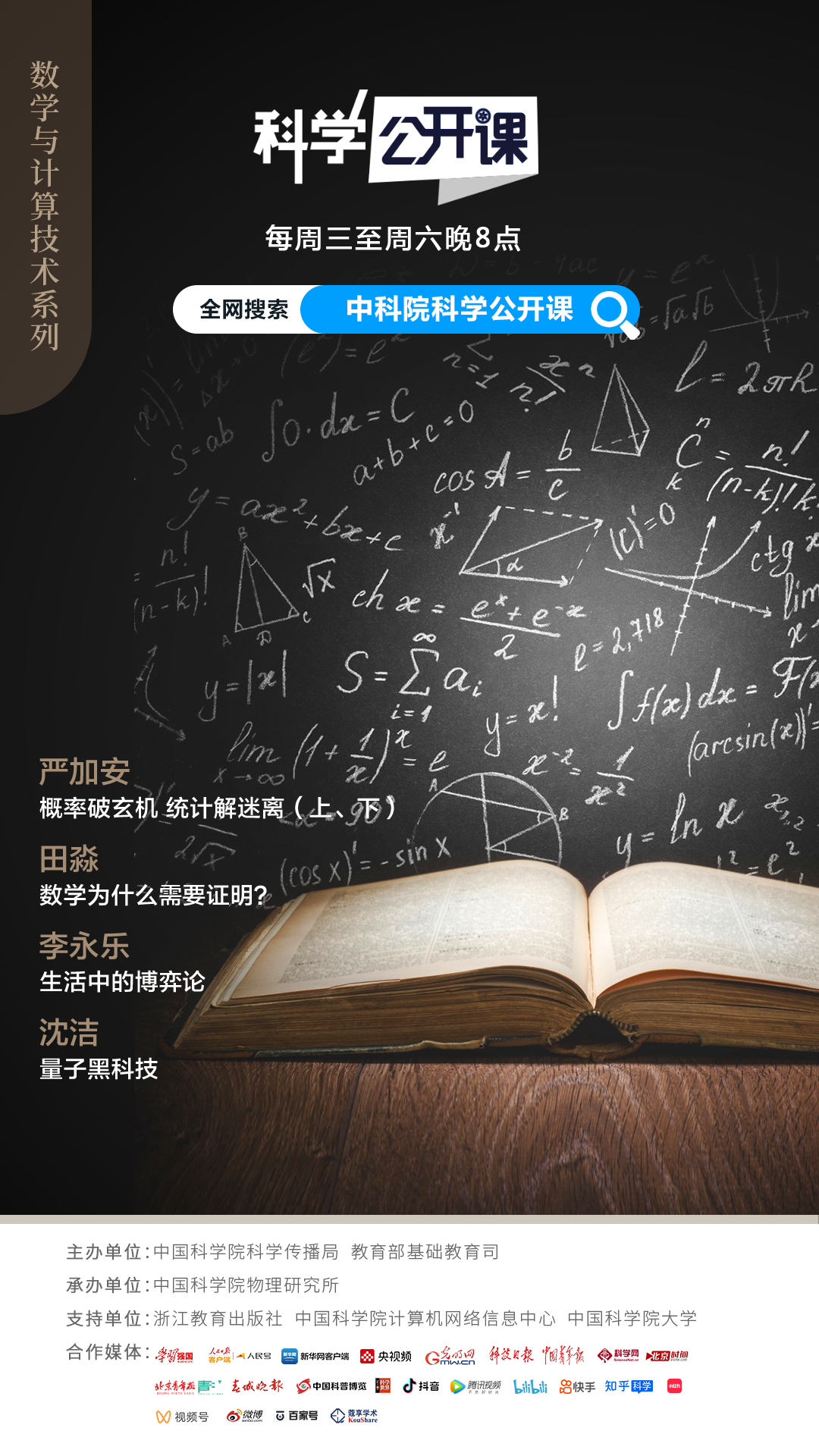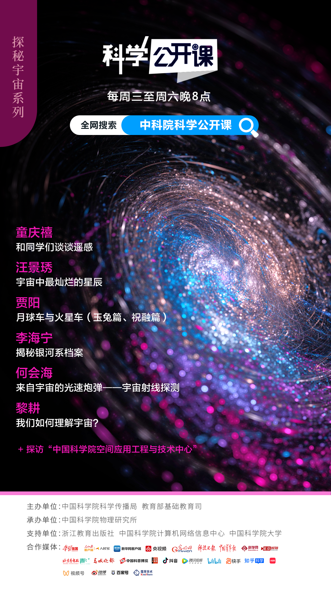 第二季《科学公开课》由中科院科学传播局、教育部基础教育司主办,中科院物理研究所承办,浙江教育出版社、中科院计算机网络信息中心、中国科学院大学提供支持。