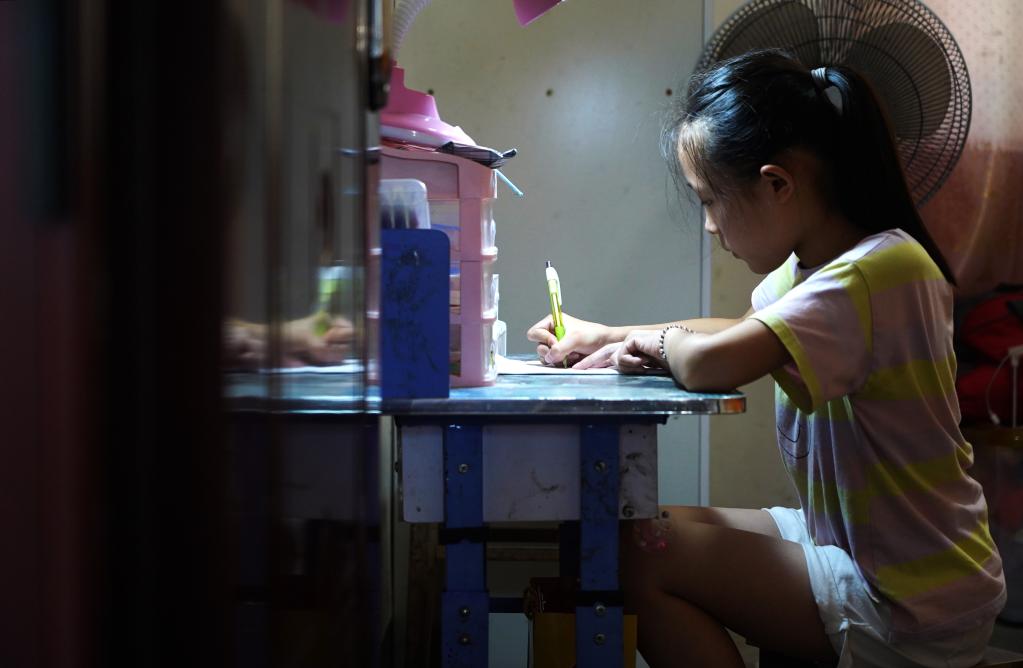 在江西省武宁县鲁溪镇梅颜村,留守儿童毕梓萱正在家中创作童诗。新华社记者 万象 摄